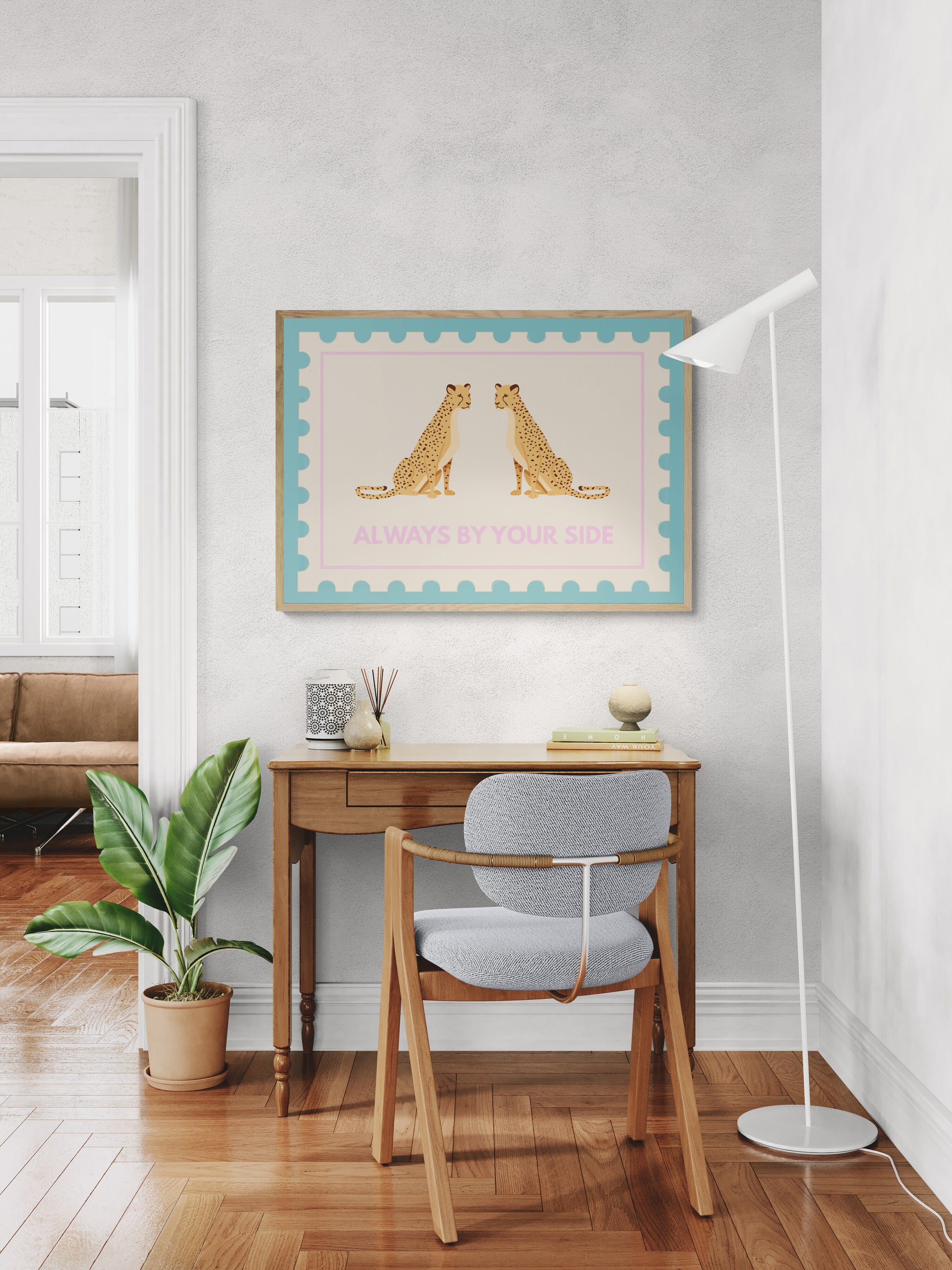 Celebrate fierce bonds with our cheetah wall art print, featuring two elegant cheetahs side by side beneath the bold word "Sisterhood" in a vintage stamp design. This vibrant, empowering piece is perfect for sisters by blood or by choice — a striking symbol of loyalty, strength, and wild love. Printed in bright, joyful colours, it’s made to bring warmth and power to your walls. Ideal as a gift or a personal reminder that you're never running solo. Add a bold statement of sisterly connection to your space today.