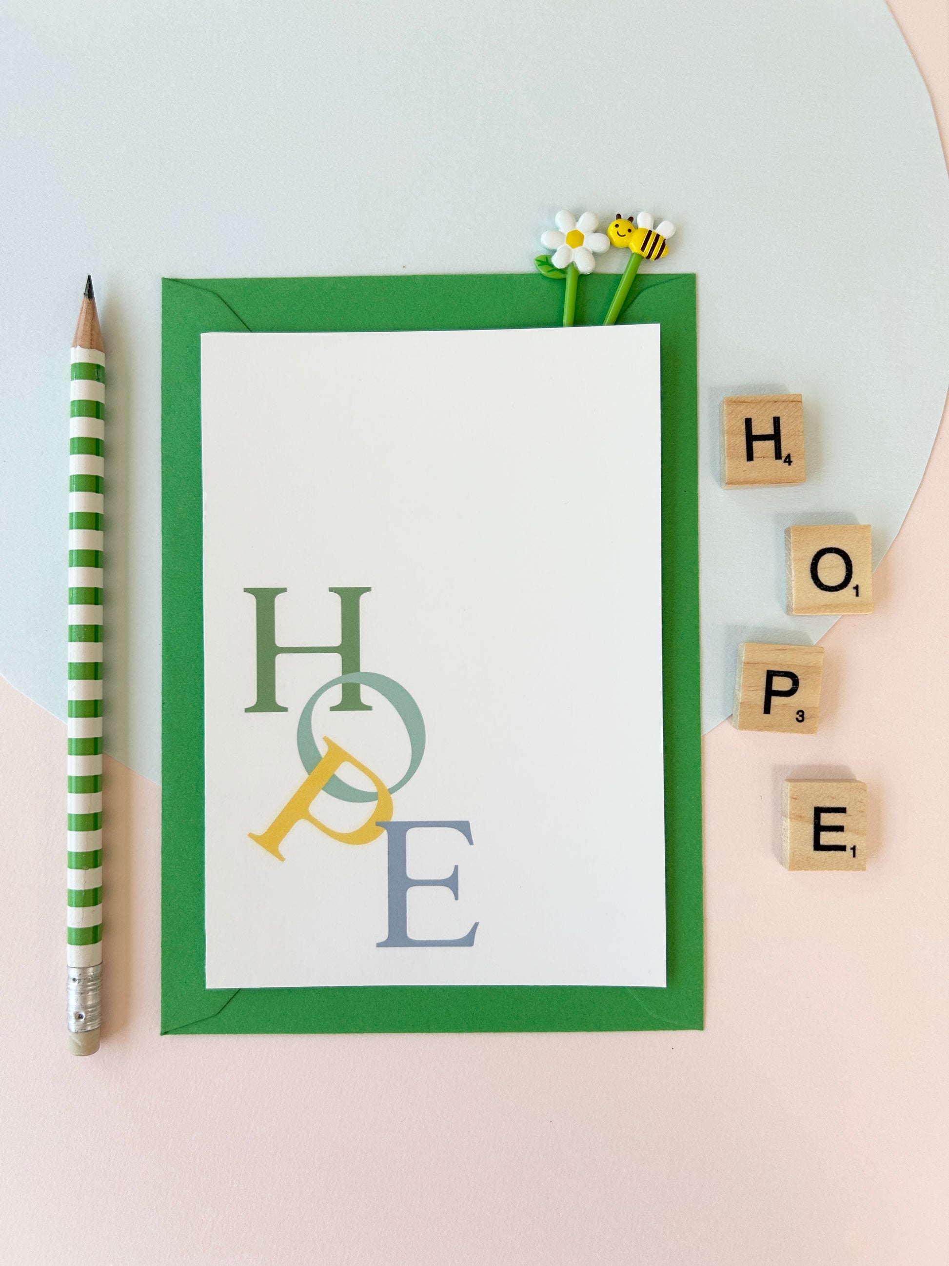 The stacked letters create a striking visual, making it perfect for framing or keeping close. Whether you're reaching out to a friend, loved one, or colleague, this hope card is a thoughtful way to show you care. Uplifting, bold, and beautifully designed, sometimes, one word says it all.
