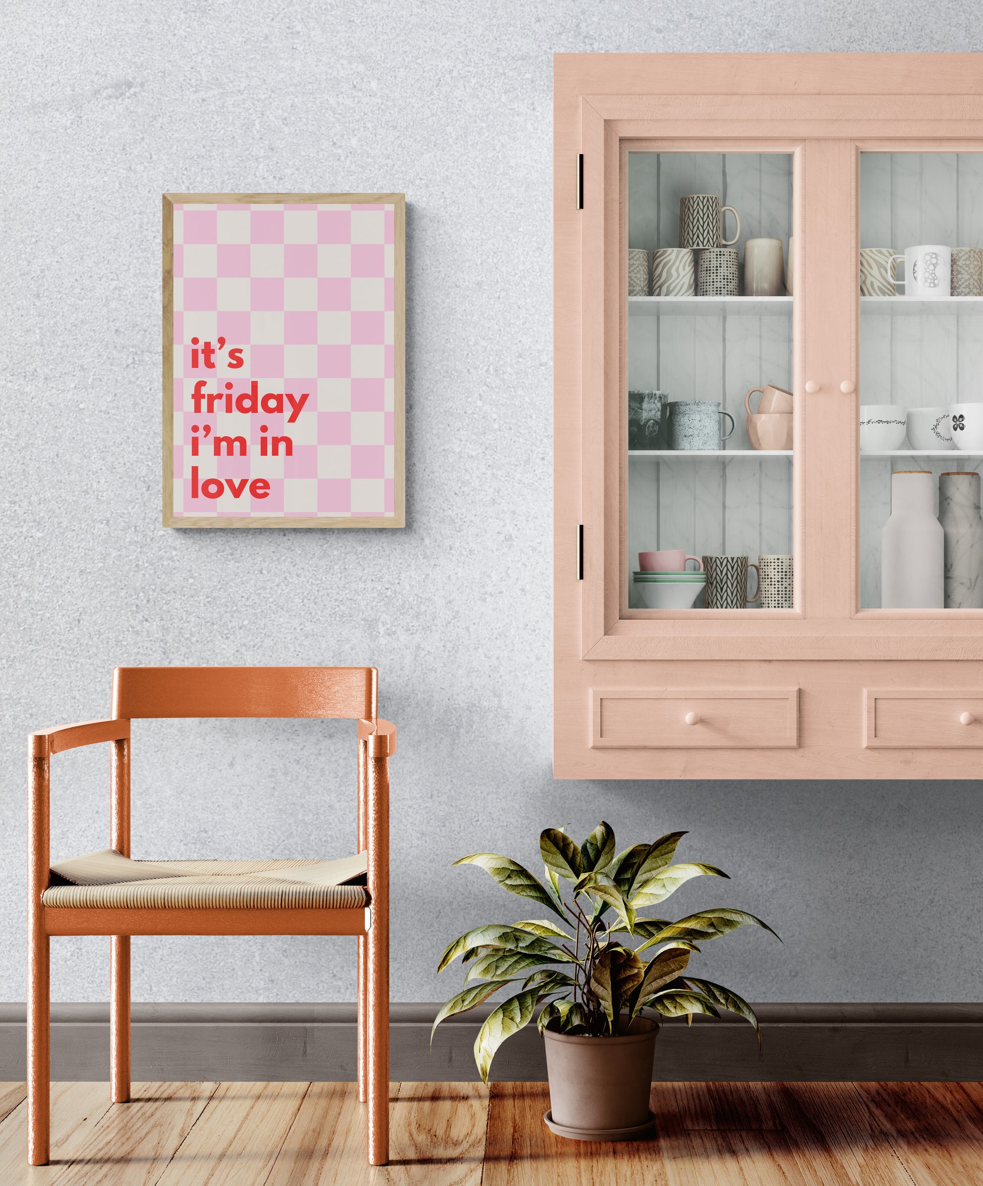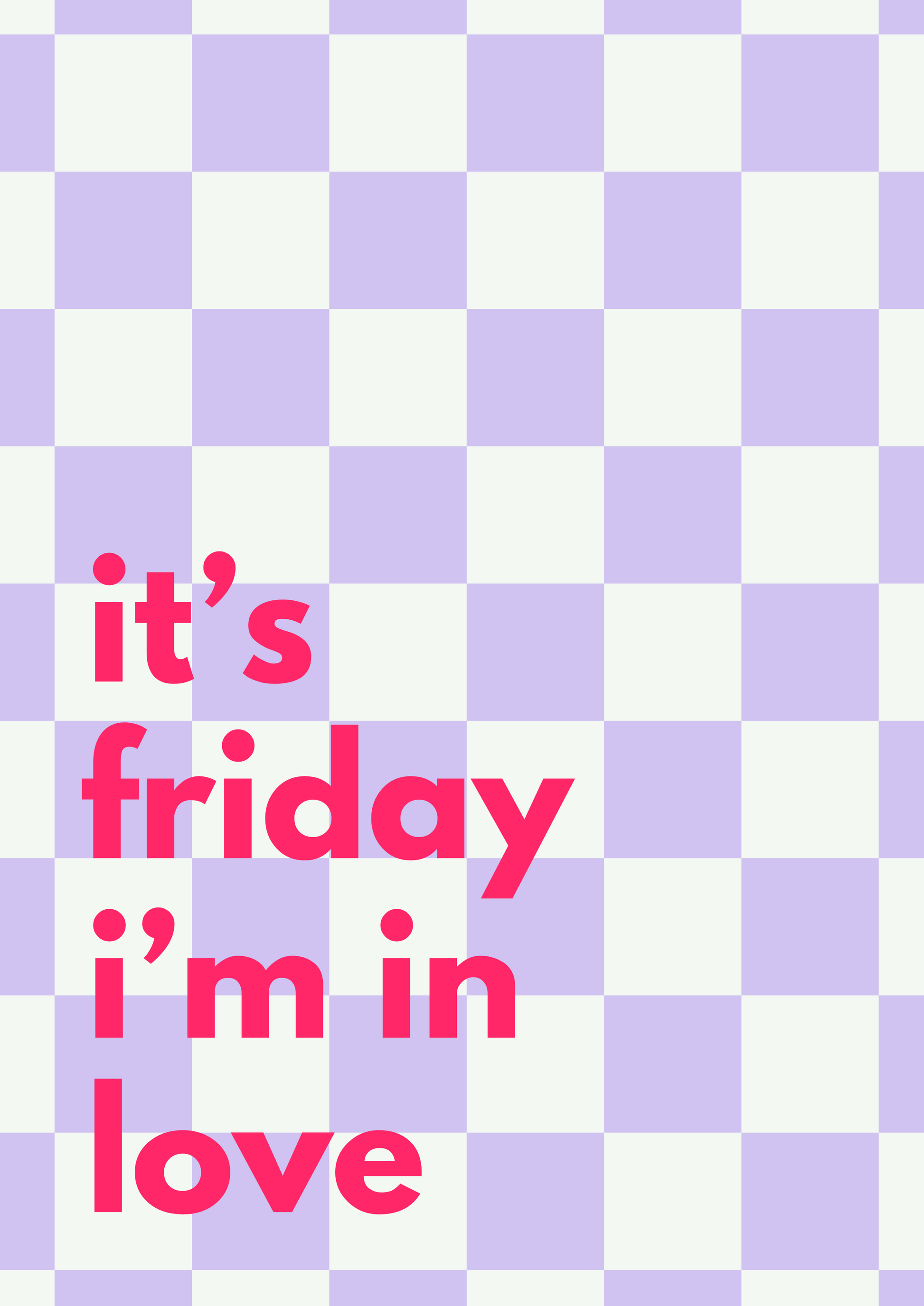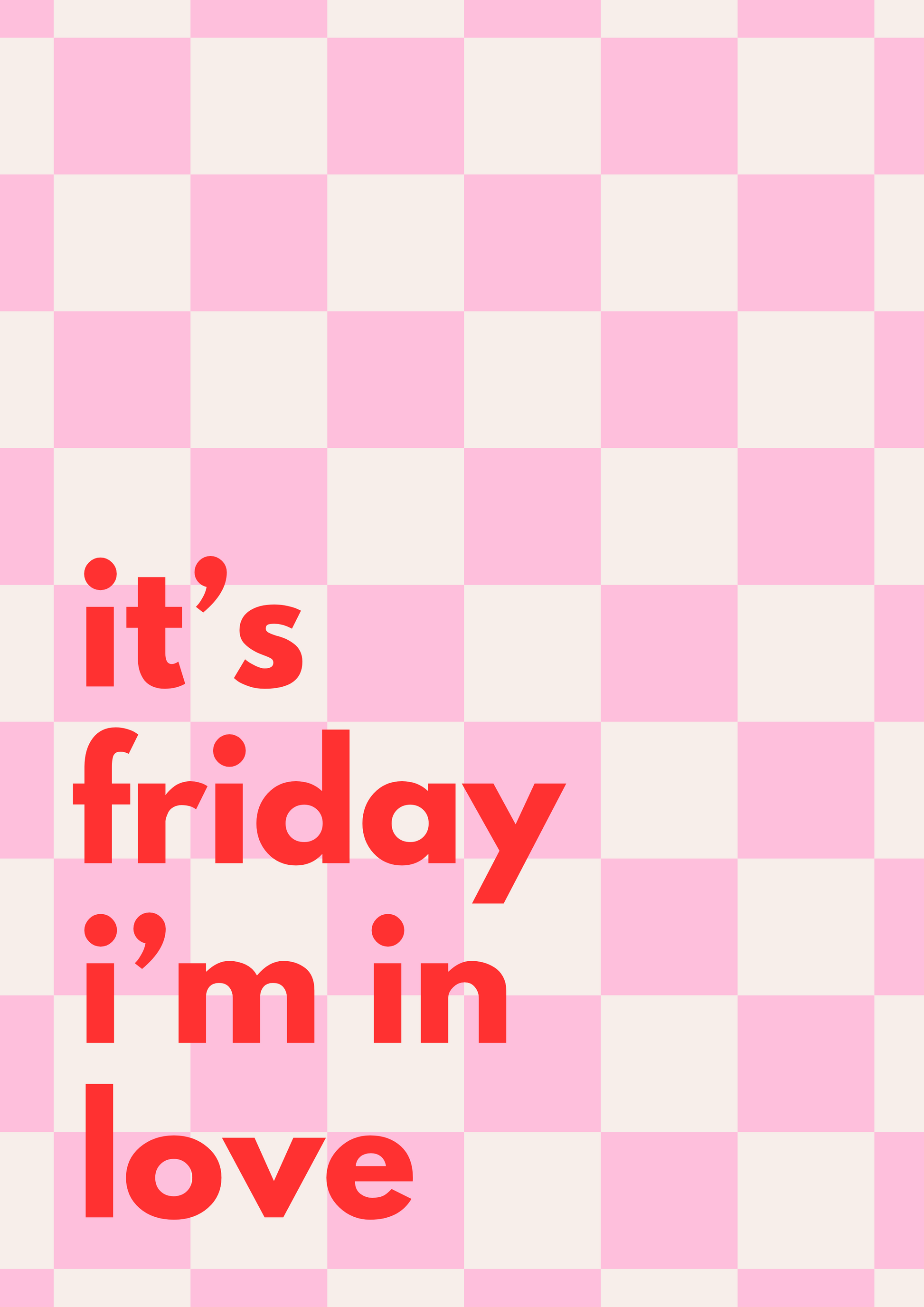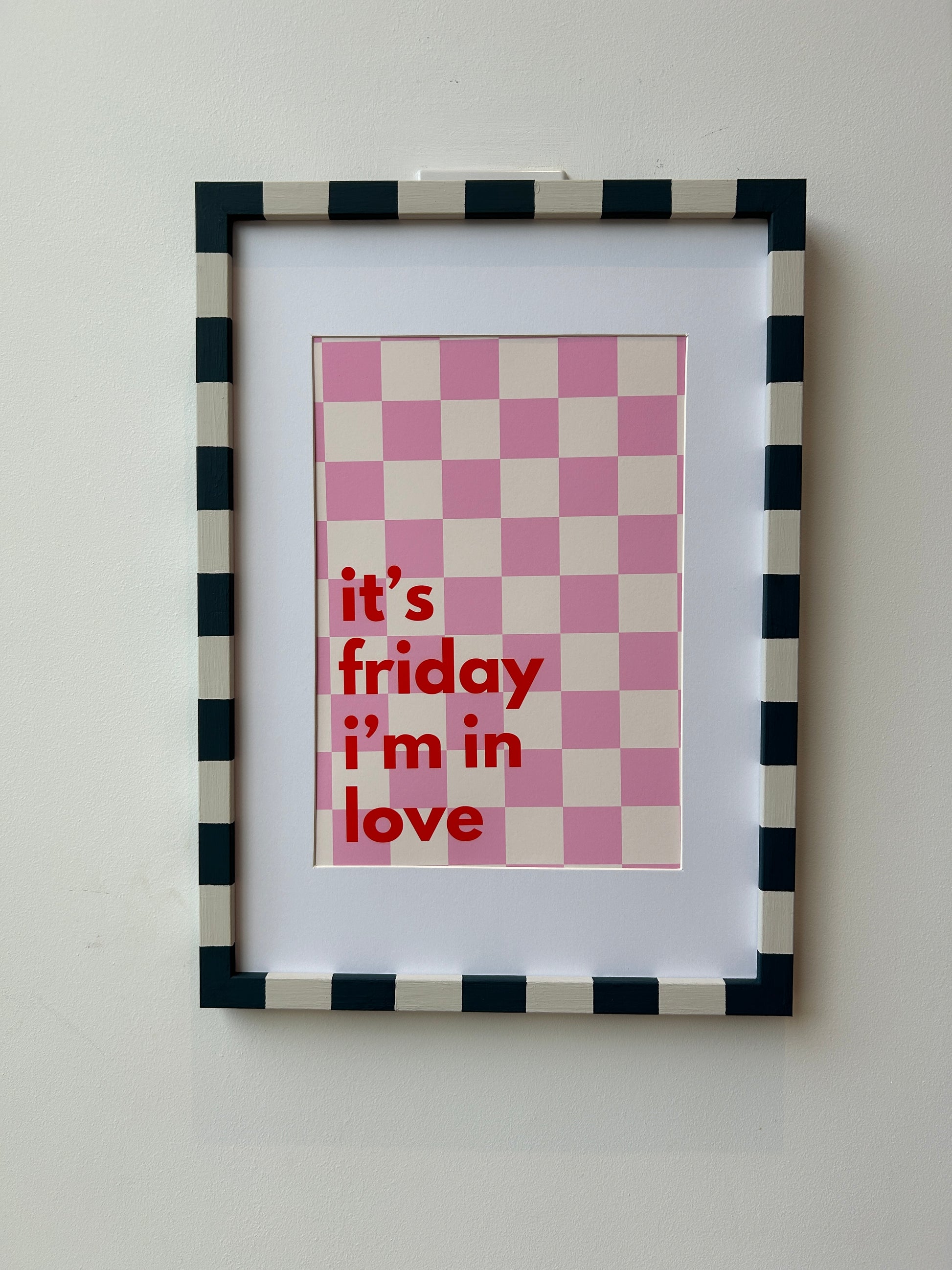 Bring happy weekend vibes into your space all week with this bold, bright print. Featuring the iconic phrase "it's friday i'm in love" on a fun chequered background, it’s the perfect pop of joy for music lovers and free spirits. A must-have for adding personality and positivity to any room.