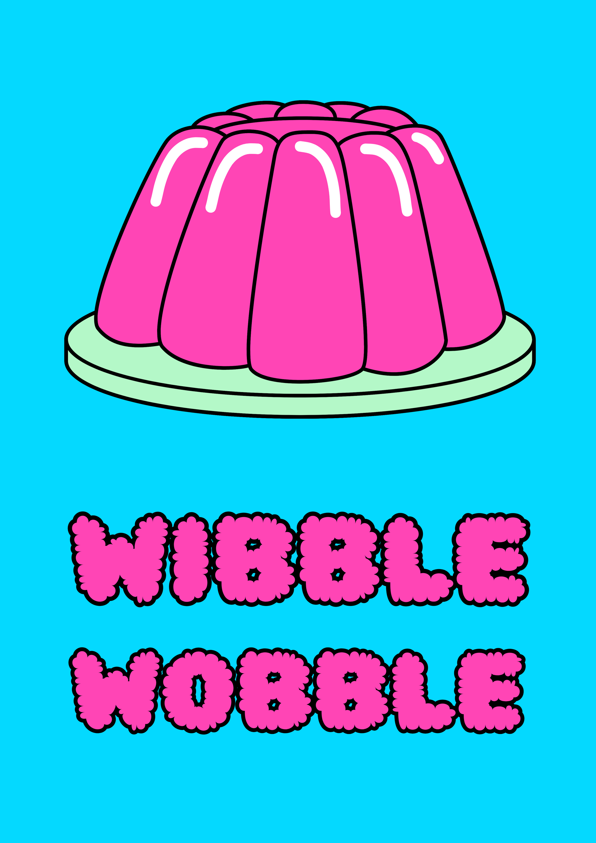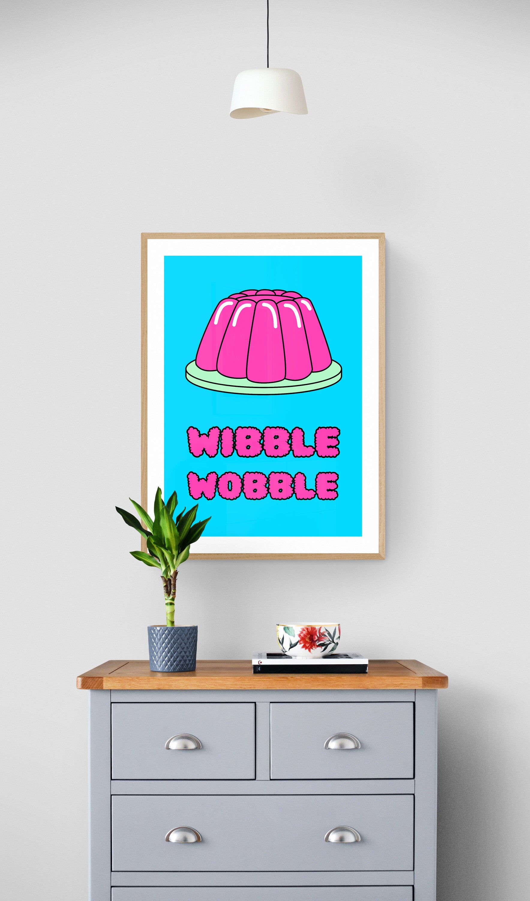 Inspired by the song "jelly on the plate" this fun and quirky wall art print features a bright, jiggly jelly in bold, cheerful colours. Beneath it, the playful words “WIBBLE WOBBLE” bounce with energy, capturing the joyful movement of jelly. Perfect for kitchens, playrooms, or anywhere that needs a splash of colour, fun, and wobbly charm!