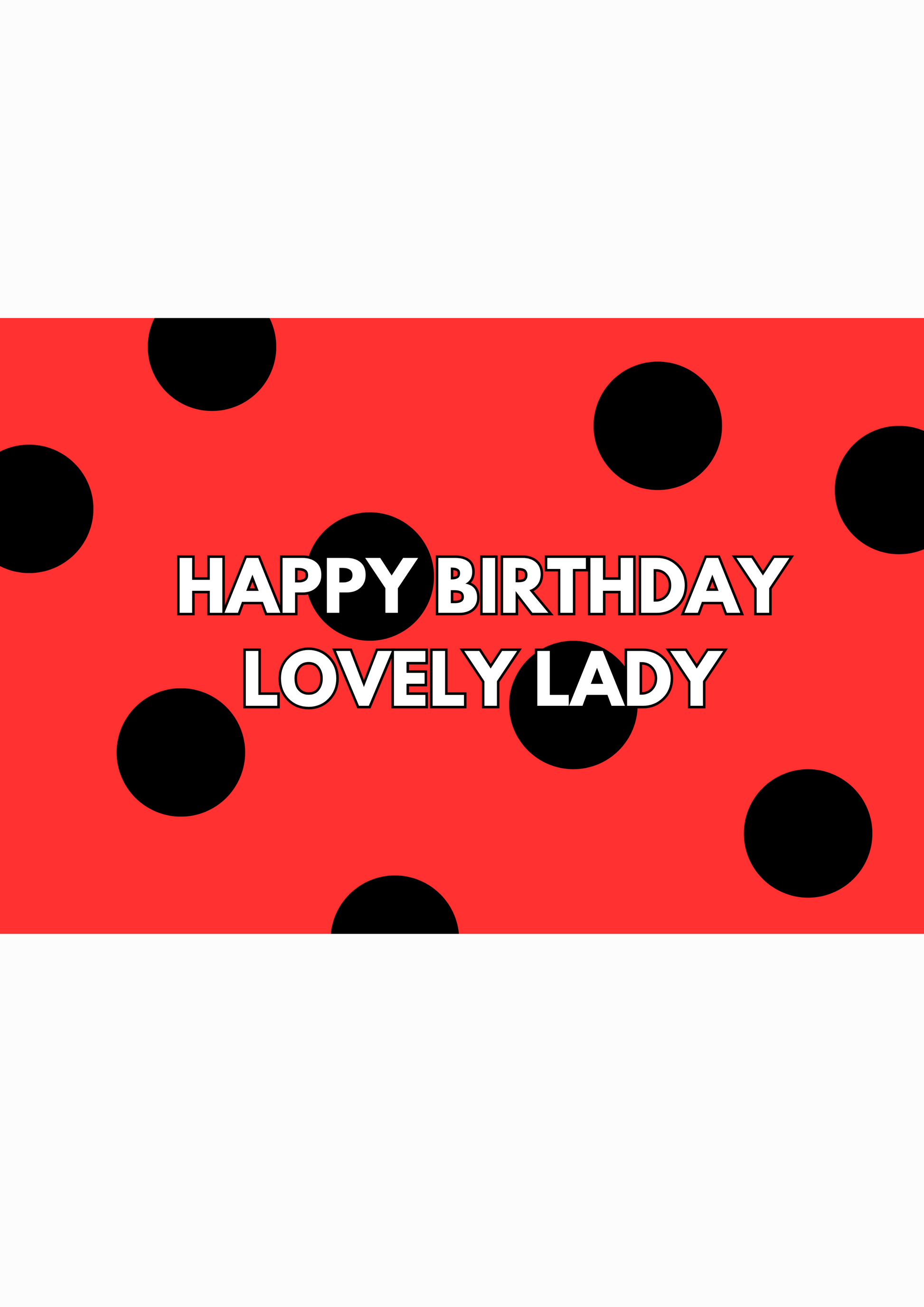 Delight someone special with this charming ladybird-themed birthday card. Featuring a vibrant red background with bold black spots and the cheerful message ‘Happy Birthday Lovely Lady,’ it’s perfect for bringing smiles and joy. This A6 card is blank inside, ready for your heartfelt message to make her day extra special.