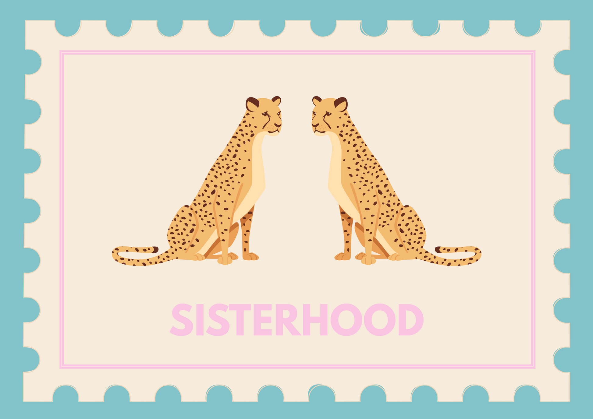 Celebrate fierce bonds with our cheetah wall art print, featuring two elegant cheetahs side by side beneath the bold word "Sisterhood" in a vintage stamp design. This vibrant, empowering piece is perfect for sisters by blood or by choice — a striking symbol of loyalty, strength, and wild love. Printed in bright, joyful colours, it’s made to bring warmth and power to your walls. Ideal as a gift or a personal reminder that you're never running solo. Add a bold statement of sisterly connection to your space today.