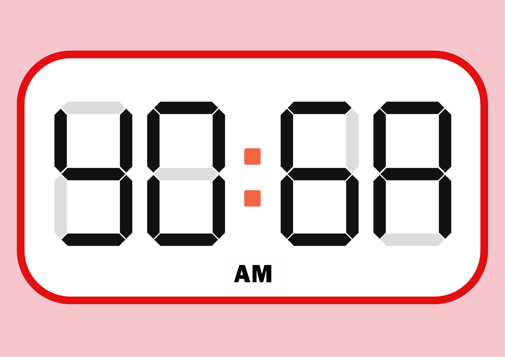 Add colour and calm to your space with this playful YOGA print, where the word Yoga is formed from bold digital-clock lettering.